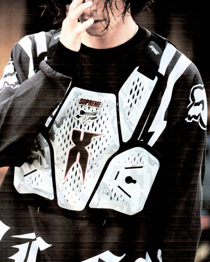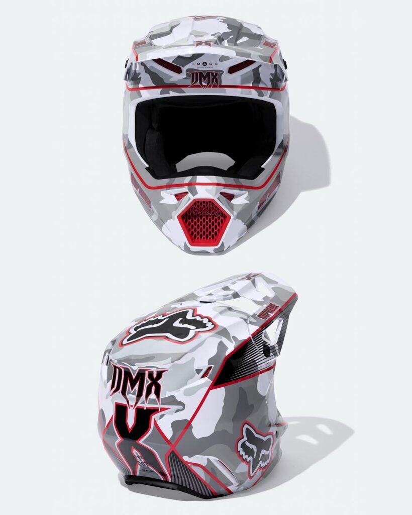 Koleksi Supreme x Fox Racing juga menjadi penghormatan bagi DMX, rapper legendaris yang dikenal karena energi dan kepribadiannya yang eksplosif. Elemen desain seperti huruf gothic besar bertuliskan “DMX” di jersey dan helm memberi kesan nostalgia terhadap era awal 2000-an.