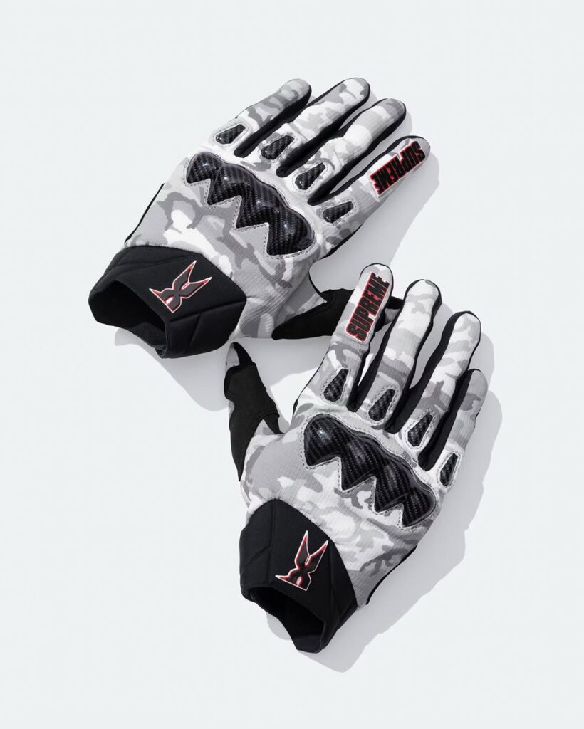 Koleksi ini tidak berhenti pada pakaian saja. Supreme dan Fox Racing juga meluncurkan topi, sarung tangan, dan helm motocross dengan desain yang khas. Pola camo, jahitan tebal, dan logo tegas memperkuat identitas visual kolaborasi ini.